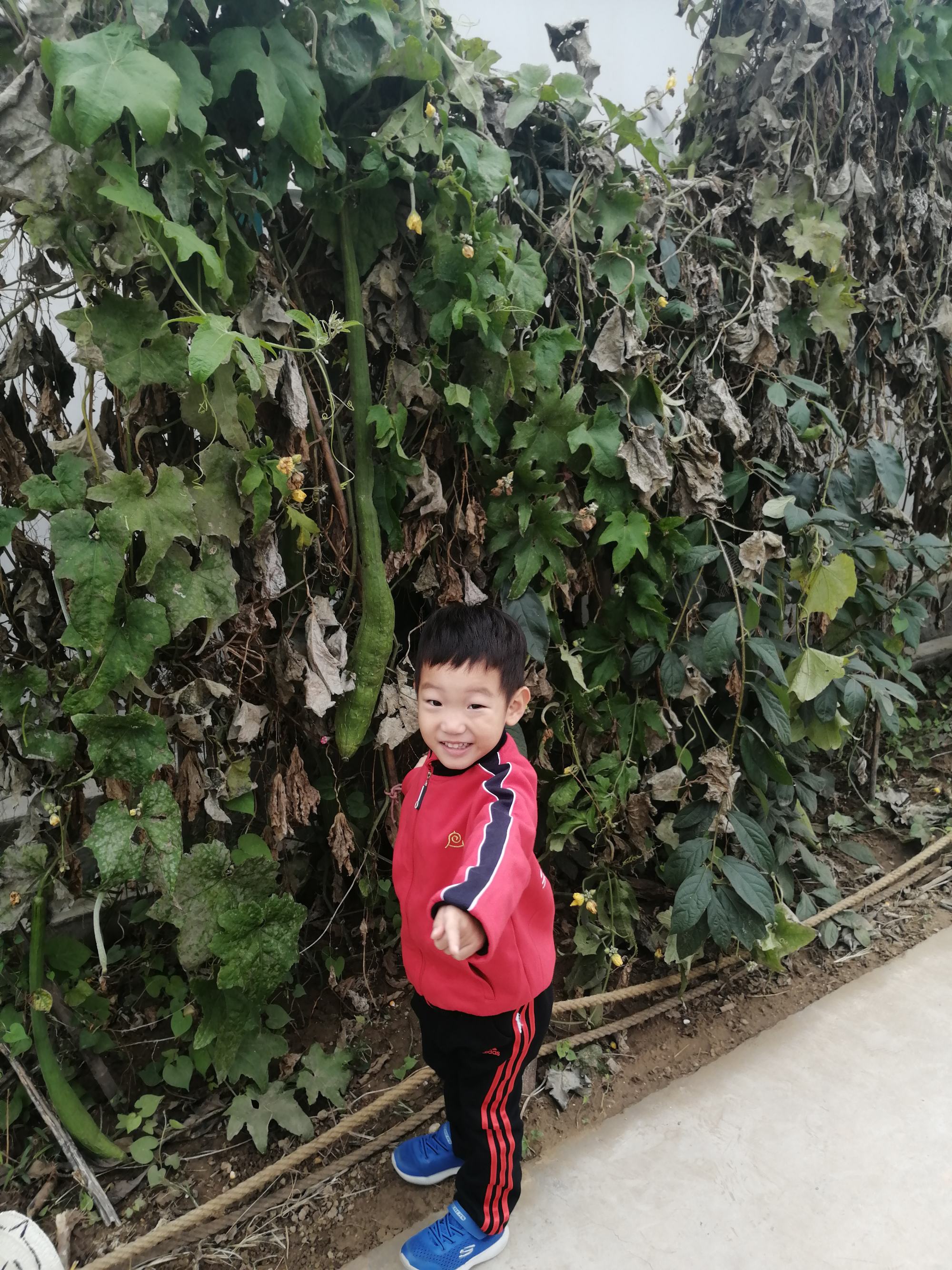 “老师,快看,我发现了一个又大、又长的丝瓜。”