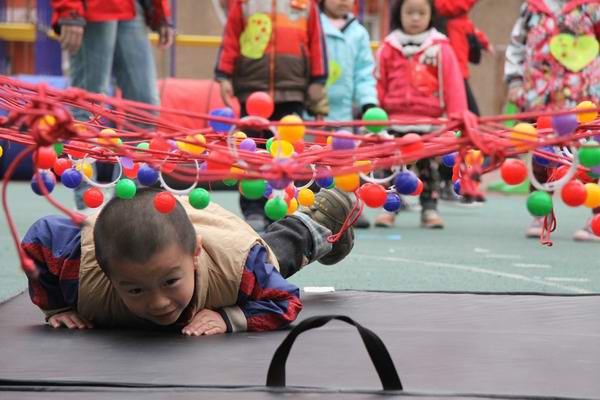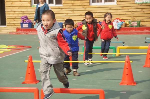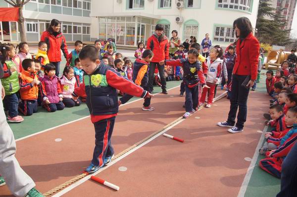 4月中旬,牡丹园分园全托班和日托班的年级组先后举行了形式多样的春季运动会。随着孩子们嘹亮的口号声和豪迈音乐,运动会拉开帷幕。在集体热身、韵律操之后,孩子们生龙活虎地参加了各项体能游艺活动。这些体能锻炼项目兼顾了情景性、趣味性、科学性、竞赛性和一定的运动强度,活动项多达数十种:翻越障碍赛、彩虹桥、云梯时光隧道、穿越封锁线、负重运球比赛、双脚连续跳、跨跳、空中投球、喂动物、打靶等等。