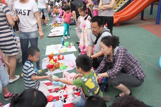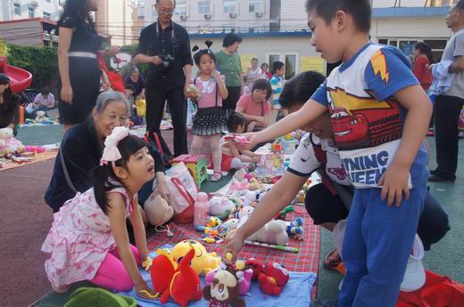 “六一”来临,牡丹园的孩子们进行了“儿童用品跳蚤市场”体验活动。在幼儿园操场中设摊摆放儿童物品(衣物、玩具、用具、图书等),进行交易活动。旨在让孩子们通过切身实践和体验,培养孩子们物品再利用的环保品质、主动表达、与人交往的能力。