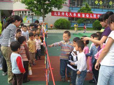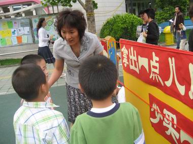孙园长和孩子们共同祈祷灾区的小朋友们平安、健康。