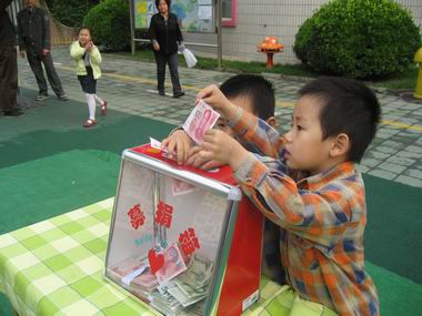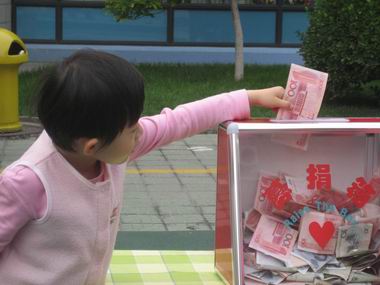 截至到2008年5月16日短短两天时间,我园幼儿和家长向灾区募捐金额共计30884元,教职员工募捐金额共计9520,九游将与家长代表一同将募捐款额捐赠给中国青少年基金会,对受灾儿童进行救助。
