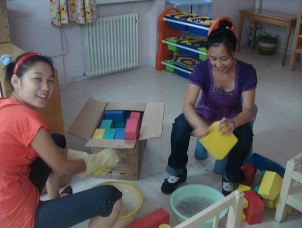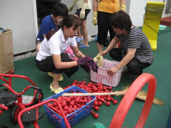 会后,教师们热情地开展了卫生清扫、玩教具材料的准备、教育环境的布置、教育活动计划的制定等各项工作。