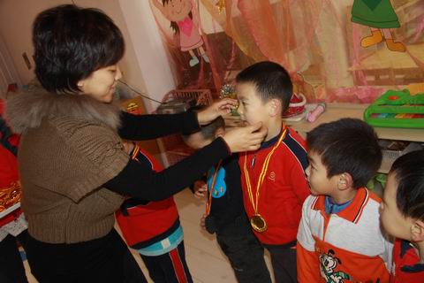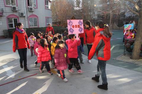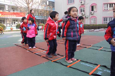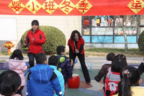 经过一段时间的冬季锻炼之后,牡丹园分园中大班和婴小班年级组先后举行了形式多样的冬季运动会。随着孩子们嘹亮的口号声,伴随着《运动员进行曲》的豪迈音乐,运动会拉开帷幕。在集体热身、韵律操之后,孩子们生龙活虎地参加了各项体能游艺活动。活动项多达数十种:翻越障碍赛、彩虹桥、云梯时光隧道、穿越封锁线、负重运球比赛、双脚连续跳、跨跳、空中投球、喂动物、打靶等等。此次冬季运动会既锻炼了幼儿体能又培养了孩子热爱体育活动的兴趣。