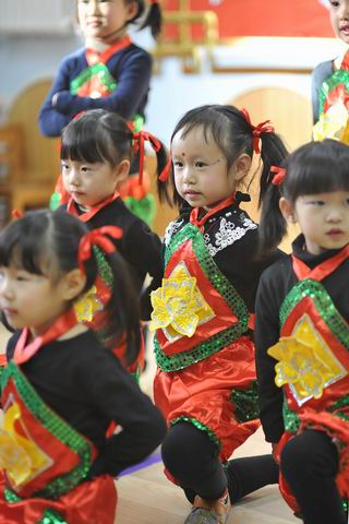 各班家园联欢以歌舞表演、互动游戏为主。各种活动可谓是精彩纷呈、好戏连台。大合唱、古诗串烧、歌表演、童话剧、集体舞轮番登场。孩子们精彩才艺表演,令家长欣喜和赞赏。除了观看表演,家长和孩子一起玩了踩气球、贴福字、揪尾巴、击鼓传花等形式多样的亲子游戏,给孩子和家长带来了无限快乐。家长们纷纷拿起摄像机、照相机,尽情的为孩子们记录下这欢乐的场面,忙得不亦乐乎,每个班都充满了其乐融融的喜庆气氛。