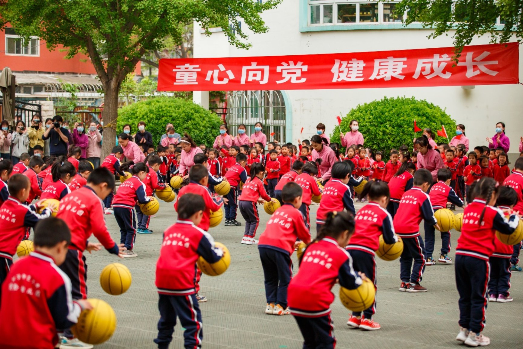 幼儿园妈妈过生日,小朋友们送上的第一份礼物当然就是健康的身体啦!4月15日下午,所有小朋友来到户外,进行了“童心向党 健康成长”春季户外体育展示活动。黄园长也来为牡丹小朋友们加油鼓劲啦!