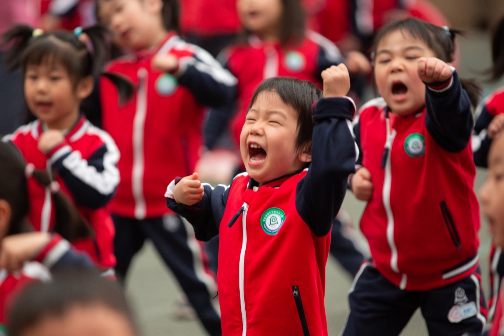 瞧!所有小朋友做操时各个精神抖擞,神采飞扬。