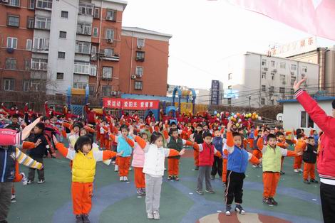 孩子们精神抖擞地展示了动感四溢的韵律操和器械操