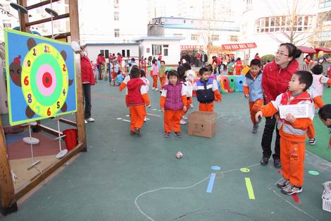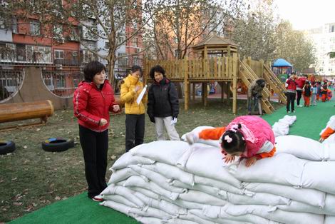 孩子们生龙活虎地参加了各项体能游艺活动。活动项多达数十种:从高处往下跳、翻越障碍赛、彩虹桥、云梯时光隧道、穿越封锁线、负重运球比赛、双脚连续跳、跨跳、空中投球、喂动物、打靶等等。