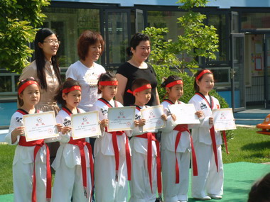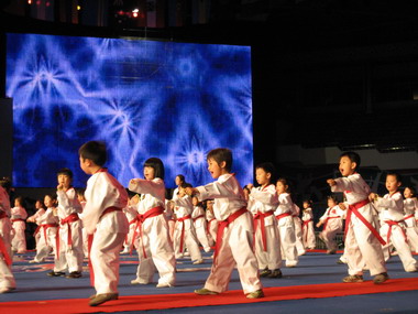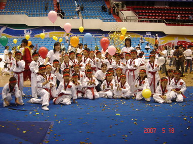 名大班小朋友参加了2007年世界跆拳道锦标赛开幕式的表演。
