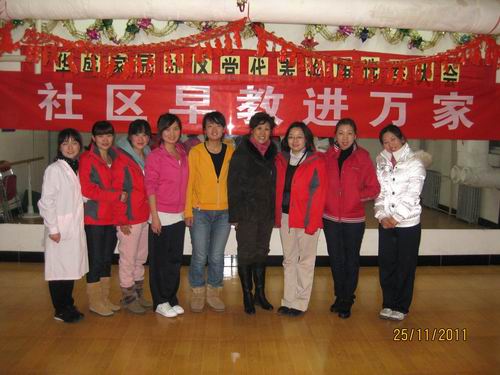 社区领导与幼儿园早教老师合影留念