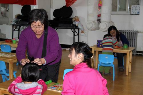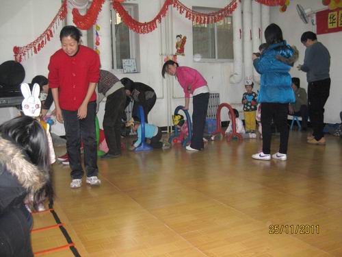 2011年11月,为了响应海淀区教委送教进社区的号召,为了广泛提高社区0-3岁婴幼儿家长早期教育的意识与能力,九游体育实验幼儿园牡丹园分园的早教老师们带着自己的宣传材料、玩教具、体检设备等,在社区领导的大力配合下,在华盛小区早教固定社区活动站开展了亲子活动。