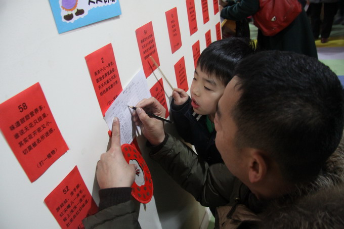12月27日晚上,幼儿园里张灯结彩,喜气洋洋,“点灯猜谜,喜迎新年”的传统庆祝仪式热闹开展,全园幼儿、家长兴致勃勃三依地参加了这一活动。