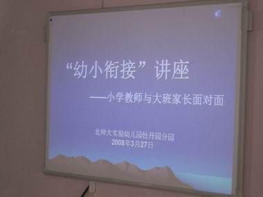 2008年3月27日九游体育实验小学一年级年级组长李老师与牡丹园大班家长就“入学前的准备”进行了专题讲座,受到家长好评。