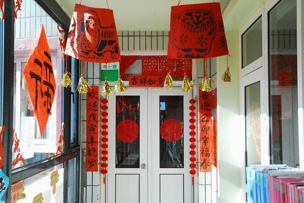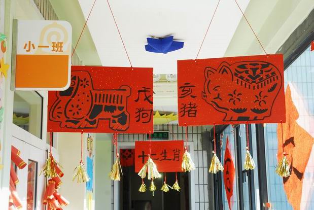 (牡丹园新年系列报道之十三) 为迎接新年到来,营造欢乐喜庆的节日气氛,牡丹园分园充分发挥环境的教育功能,以“处处是创造之地,天天是创造之时,人人是创造之人”为思想,全体教师和孩子们一起布置了新年环境。全园师幼齐动手,精心制作了一幅幅匠心独运的作品,用红红的鞭炮、红红的灯笼、红红的窗花、红红的中国结、彩色的拉花、俏皮的生肖等,营造出了春节红红火火的浓浓氛围。 一起来欣赏这些集教育、审美、童趣于一体的环境吧,它们彰显了教师和孩子的智慧。 |