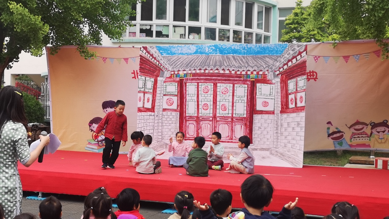 大一班小朋友和家长自编自演的童话剧《奇奇妙妙逛胡同》。