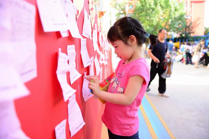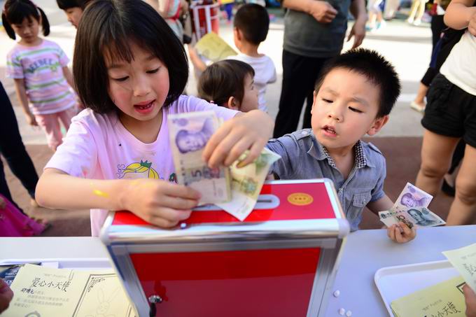 六一前夕,本着“向灾区奉献爱心”和“体验社会生活”的主旨,5月27日和5月28日,分两场进行了儿童用品跳蚤市场活动,两天展出摊位200多个。在家长的陪同下,孩子们开始了“练摊”体验。他们拿出自己闲置的用品,小玩具、图书、识字卡片、毛绒玩具、铅笔、贴画在儿童跳蚤市场上摆摊销售。老师们还制作了收支记录单供孩子们统计使用。孩子们努力地推销自己的物品,把自己赚的钱捐给灾区。由家长代表、教师代表最后核算,两天跳蚤市场收到近八千元善款,全部捐赠给芦山第二幼儿园,用于灾后校舍重建等。