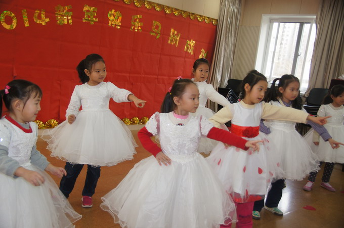 马年到来,12月27日,大班全体小朋友们欢聚在一起,用动听的歌声,热情的歌舞,迎接新年的到来。在音乐教室里,分别表演了《今天是个好日子》、《铃儿响叮当》、《Go Go Girl》、《中华好小子》、《喜乐年华》、《春晓》、《霍元甲》等多个精彩节目,在喜气洋洋的气氛中迎接马年的到来。