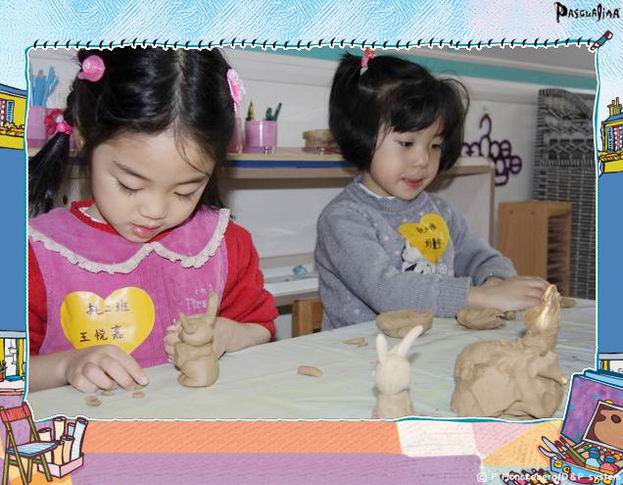 12月25日上午,全托班利用各个教室开辟了多个活动区,包括:油彩拓印、泥工兔、画年画、剪窗花、贴福字、写福字、做拉花等传统手工艺项目。大孩子、小孩子们手拉手自主选择游艺活动,每个活动项目都让孩子们爱不释手,欢乐的新年气氛溢满整个幼儿园。