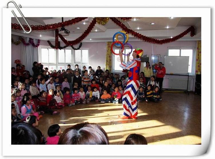 新年来临,幼儿园里张灯结彩,环境焕然一新,处处洋溢着节日的气息。牡丹园幼儿园再一次邀请民间艺人分别给日托和全托的孩子们带来了两场精彩的魔术、杂技表演。艺人们娴熟的技艺让孩子们惊喜、兴奋、好奇……整个演出掌声不断、加油声不止,场面相当热烈、火爆。