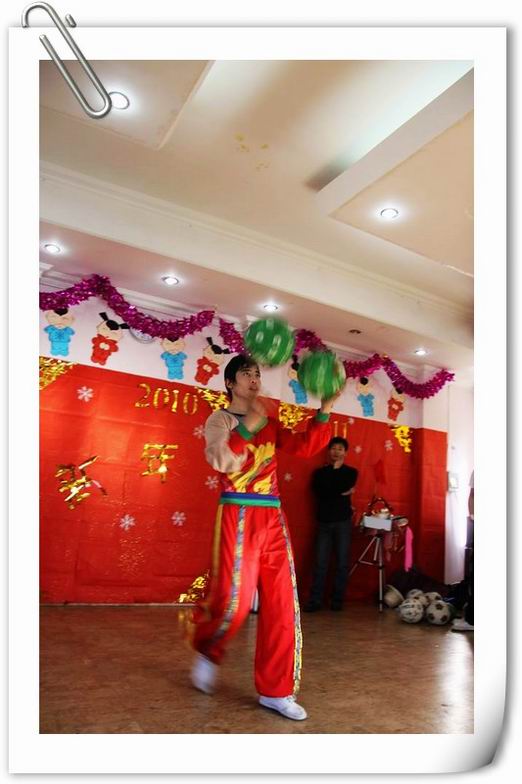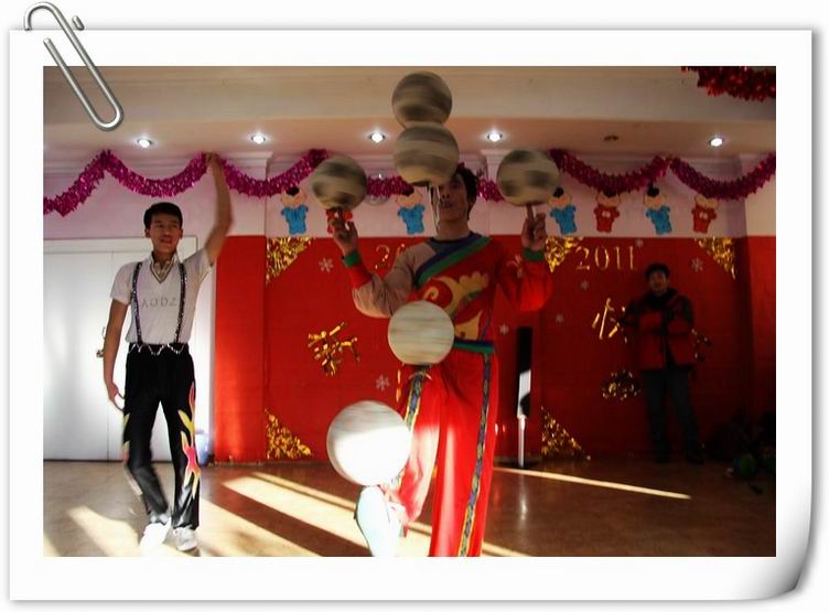 杂技演出在喜庆的锣鼓声中开始了……