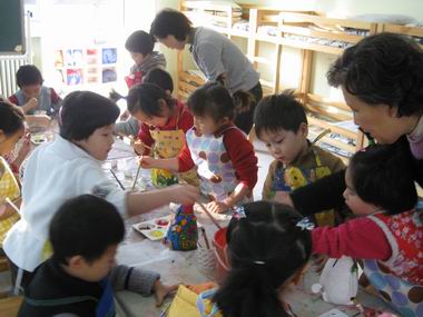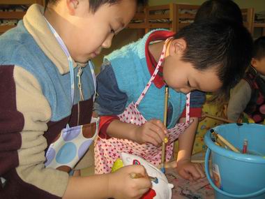 大家一起专心致志的彩绘老鼠