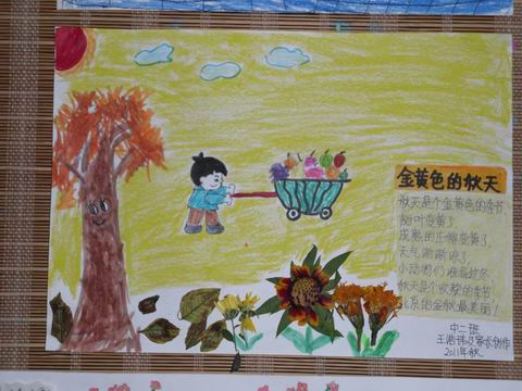 “秋天的秘密——艺术作品展”共征集了中大班60多幅亲子艺术作品。孩子们以独特的视角、丰富的想象,利用各种收集的自然物,通过绘画和挑选、仿编、创编儿歌、散文、故事等各种文学作品,创造性地展现大自然的人物花鸟的灵性和美感,展现了孩子们感受秋天、发现秋天秘密的喜悦之情。