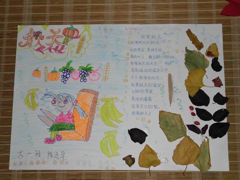 秋游活动之后,幼儿园还举行了“秋天的秘密”艺术创作活动,孩子们通过涂鸦、彩绘、拼贴、摄影、手工、剪纸,配上挑选、改编或创作的有关秋天的儿童文学作品(诗歌、童谣、故事……)