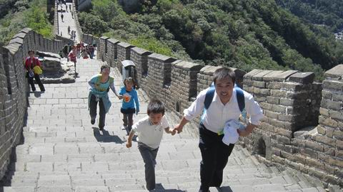 大手牵小手,共同登长城