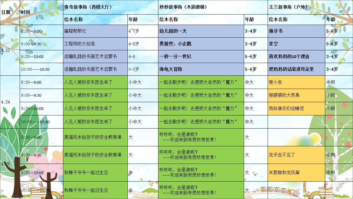 丰富多彩的故事内容制作成展板,老师可以带着孩子们按兴趣报名