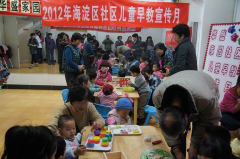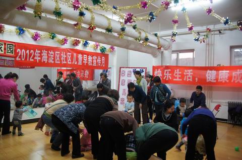 2012年11月,为了广泛提高社区0-3岁婴幼儿家长早期教育的意识与能力,牡丹园分园积极响应海淀区教委送教进社区的号召,老师们带着自己的宣传材料、玩教具、体检器材等,在华盛小区早教固定活动站开展了宣传活动。老师们根据孩子的年龄特点,设计了生动有趣的游戏活动,还特别组织了《贪吃的变色龙》语言小主题活动。宝宝们和家长们对每个活动表现得兴致勃勃,意犹未尽。在活动现场,九游免费发放了科学育儿早教宣传材料,保健大夫给宝宝们进行了体检,老师们还解答了家长的育儿问题。