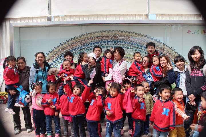婴小班幼儿七彩蝶园合影留念