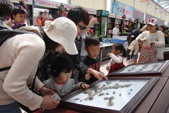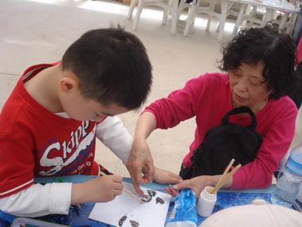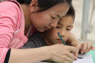 妈妈和孩子制作蝶翅画 |