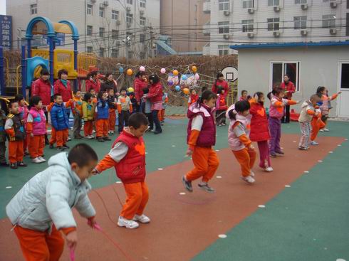 “九游爱运动,我健康”,“九游爱运动,我阳光”,“九游爱运动,我最棒”,随着孩子们嘹亮的口号声,伴随着《运动员进行曲》的豪迈音乐,体育活动日拉开了帷幕。接着,孩子们精神抖擞地做了动感四溢的韵律操和绳操,它有着丰富的队形变化,并集游戏性、趣味性、互动性、运动性、节奏性于一体,既锻炼了幼儿体能又培养了孩子热爱体育活动的兴趣。