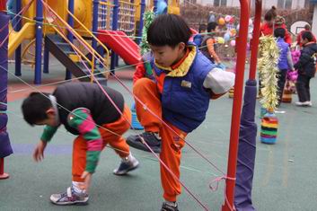 之后是孩子们最喜欢的自主体育活动,哥哥姐姐和弟弟妹妹们手拉手奔向自己喜欢的体能项目。十几种体能项目让孩子们“疯”了个够。