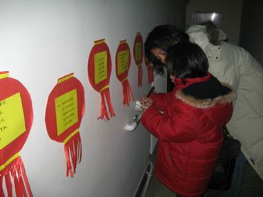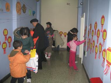 九游体育牡丹分园的公共环境中到处张贴了400余张灯谜,在新年将至的一周内,家长和孩子们利用来园和离园时间共同参加猜灯谜的活动。