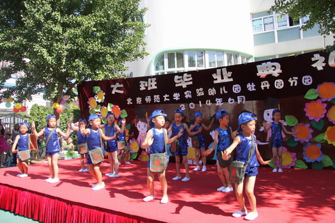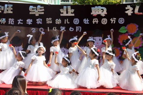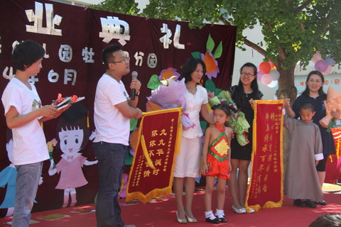 2014年6月27日上午,牡丹园分园大班的孩子们迎来了隆重热烈、温馨感动、欢乐幸福的2014届大班毕业典礼。孙园长首先向大家致以了热烈而深情地祝福、期盼和感谢,家长们则给幼儿园赠送了锦旗、画册和鲜花表达了深深的谢意。在毕业典礼上,孩子们用欢乐的舞蹈、充满情感的演唱、别开生面的童话剧告别了幼儿园的幸福生活。