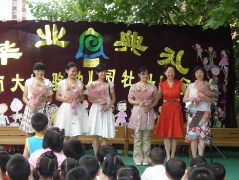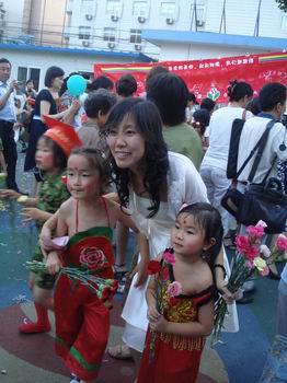 黄园长为与孩子们朝夕相处的老师送上一束鲜花,对她们表示感谢