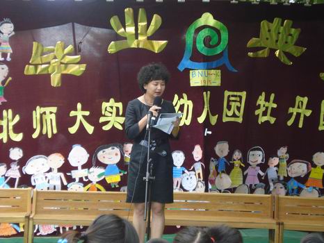 黄珊总园长也在百忙之中来到毕业典礼现场,祝贺孩子们长大了
