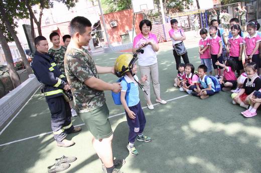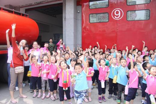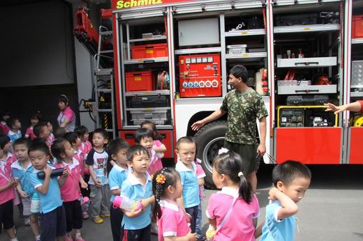 消防队员用浅显的语言和各种各样的灭火与救生器材向孩子们讲述了消防服的穿着与作用、如何预防火灾、如何逃生、火灾的危害、消防器械的功能等。孩子们还有幸见识了“云梯”、高压喷射枪、泡沫喷射枪、定位器、呼救器等各种器具。消防队员耐心解答了孩子们提出的各种各样的问题。