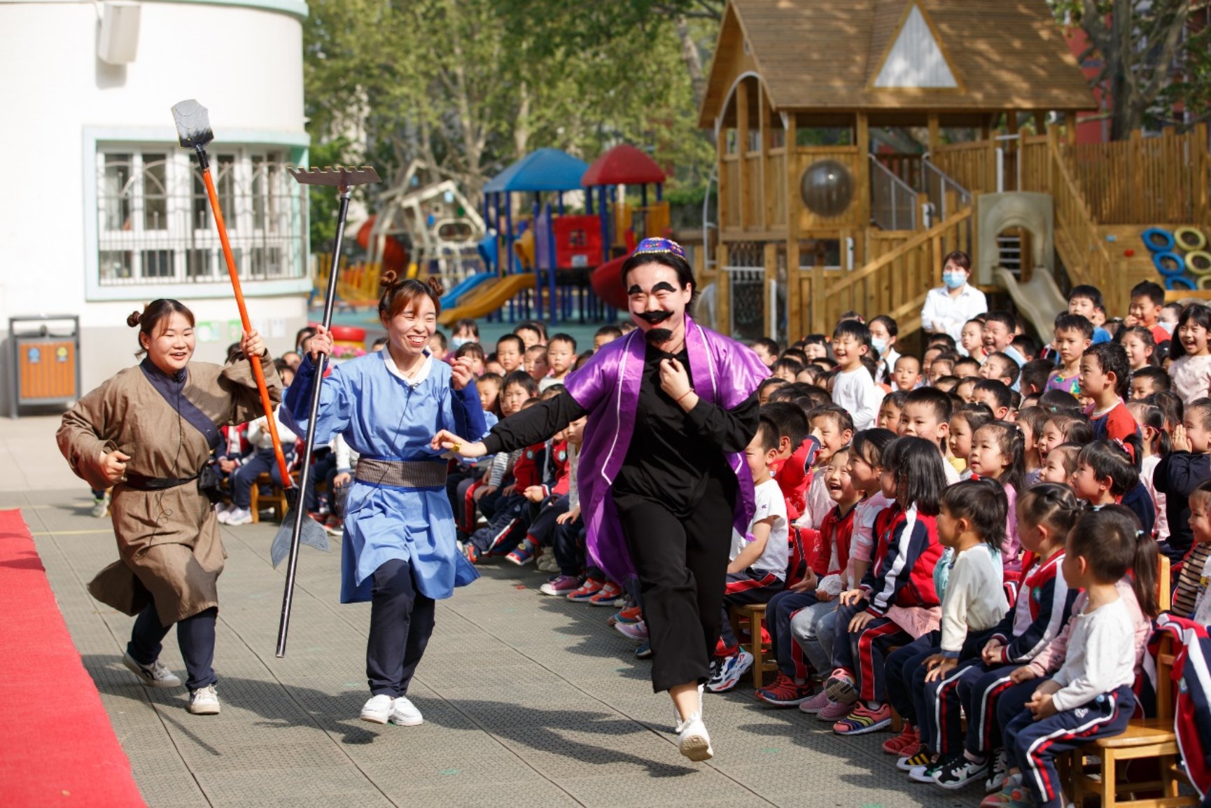 每年4月份,九游体育幼儿园都会举办阅读节的活动,今年也不例外。4月19日下午,九游体育牡丹分园举办了第十一届阅读节开幕式活动。今年恰逢中国共产党建党100周年,阅读节以“童心向党 阅读成长”为主题,希望小朋友们都能够有爱党爱国的思想,又有热爱阅读的习惯。也因此今年的阅读节中有很多红色故事上演,在开幕式的活动中夏园长就为小朋友们讲述了《刘胡兰小时候的故事》、蒙班组和日托班组的老师们分别进行了故事表演《小萝卜头》、《半夜鸡叫》。现场的小朋友们各个听得聚精会神,有趣的地方大家一起捧腹大笑。