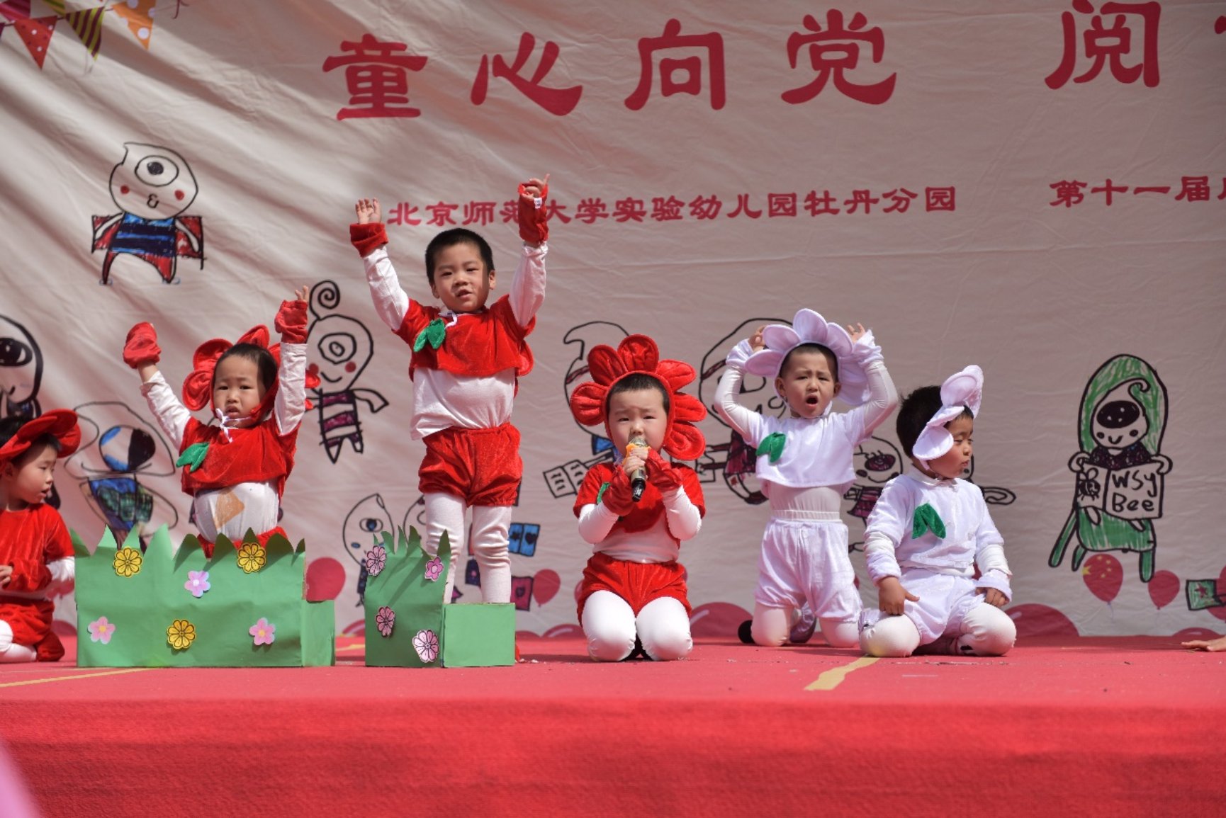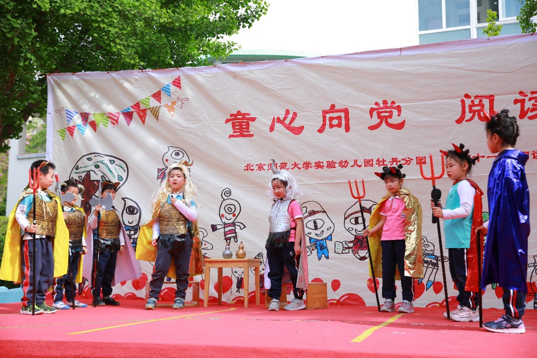 4月28日-30日,阅读节活动达到高潮,全园每一位小朋友都登上舞台,带来了精彩绝伦的故事表演。有充满爱国色彩的《闪闪的红星》《王二小的故事》,也有传统色彩的《九色鹿》《西游记》,还有童趣可爱的《小蝌蚪找妈妈》《三只蝴蝶》等等。所有小朋友们在童话剧表演的过程中不仅体验到了表演的乐趣,也深入的品味了经典故事,大家的语言、交往、表达、沟通、想象等能力都得到了全面的提高。通过阅读节丰富多样的活动,小朋友们在听故事、讲故事、演故事中收获了知识、欢乐和自信。虽然阅读节结束了,但阅读会继续伴随着孩子们每一天的成长。