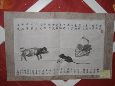 书法:贺新年迎奥运 水墨:富贵牡丹
