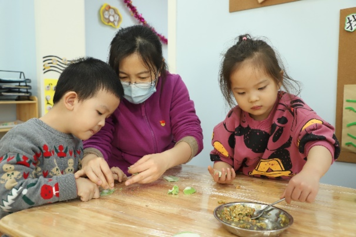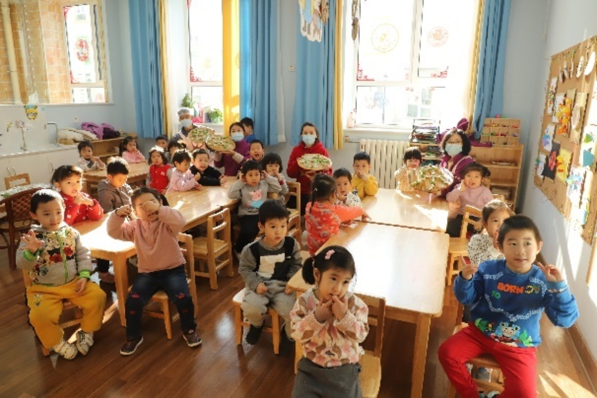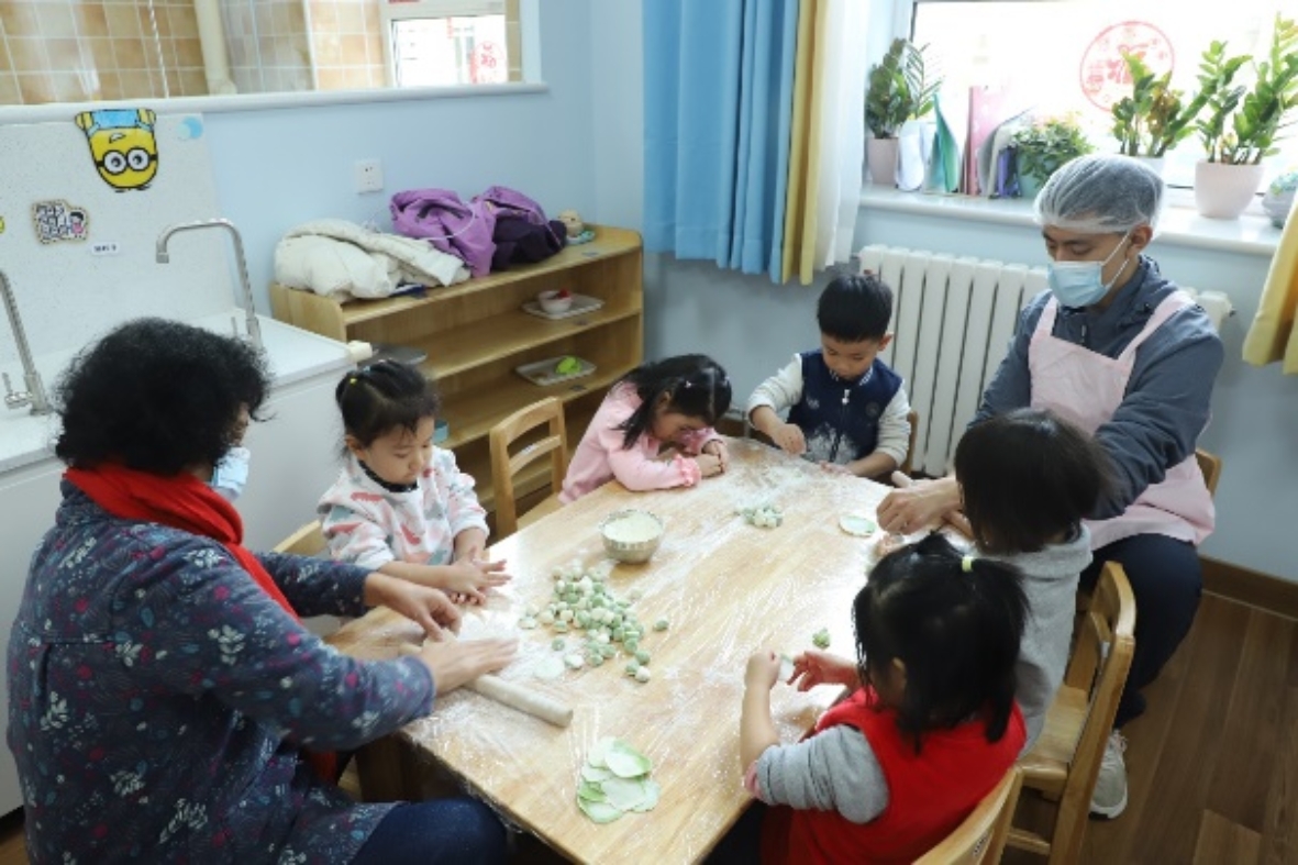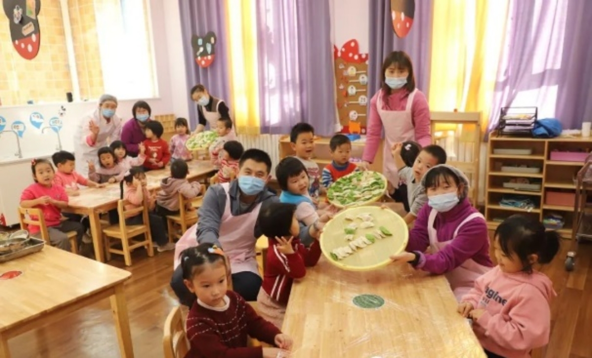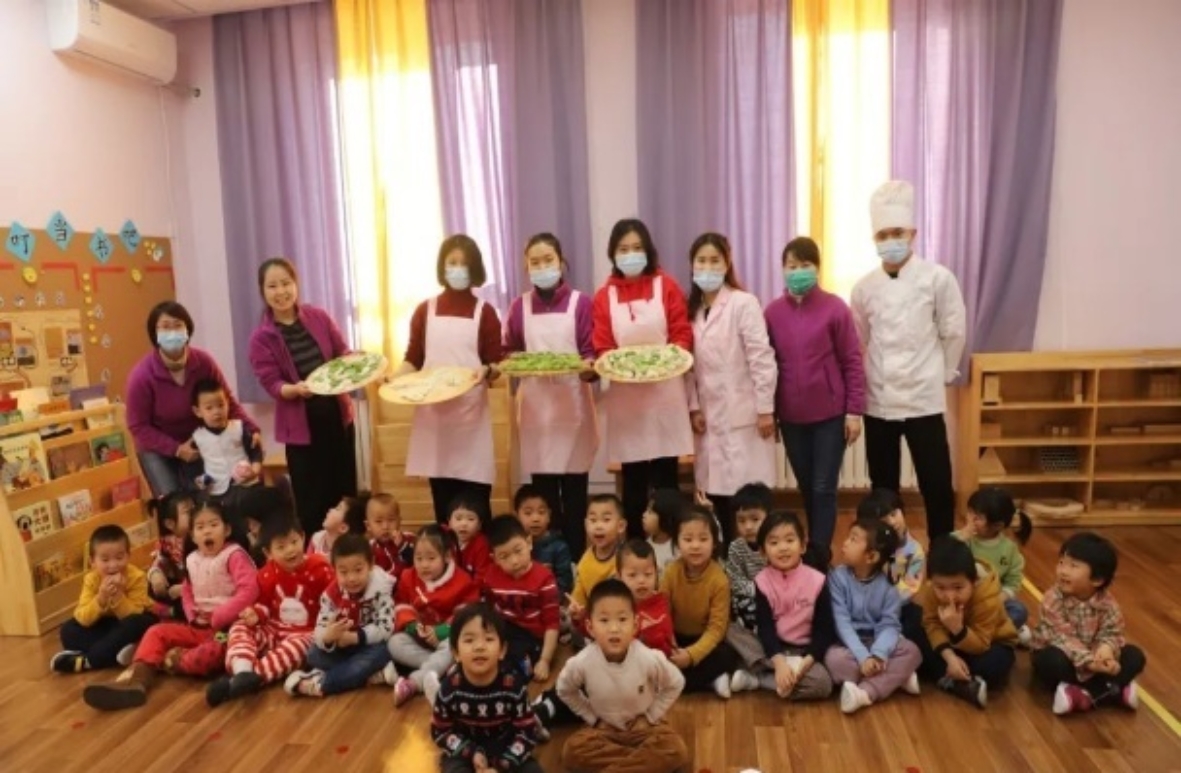 后勤、行政各岗老师走进班级和孩子们一起包饺子,其乐融融,感受似年夜饭一样的快乐!
