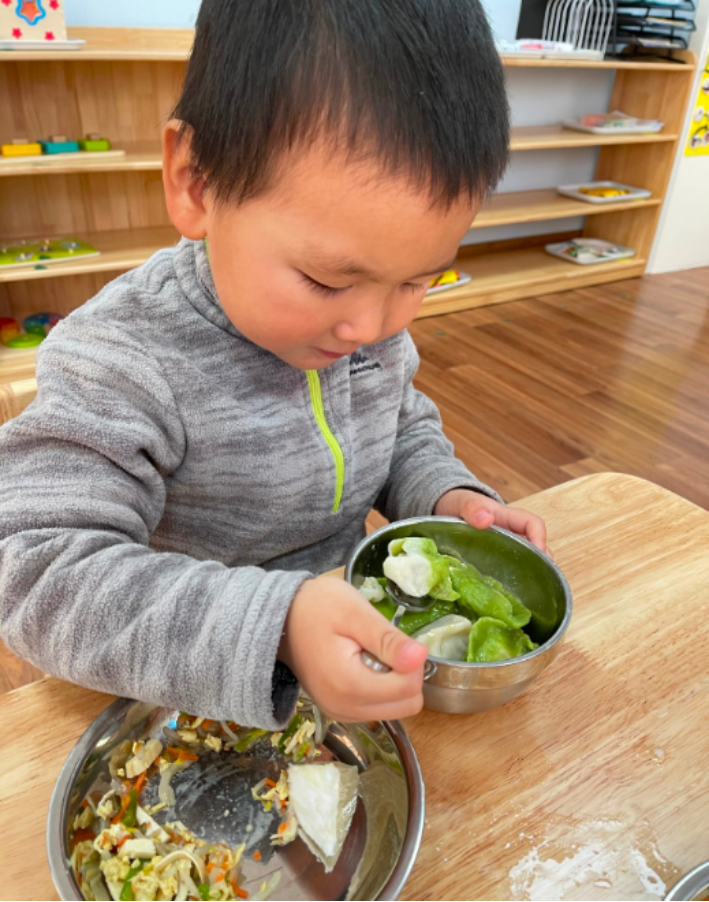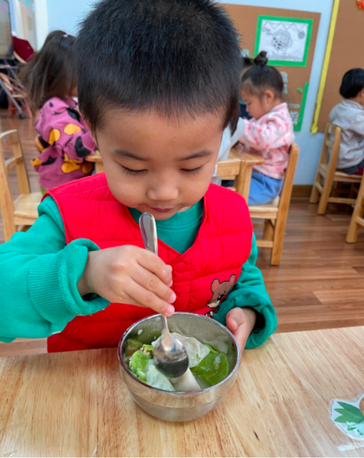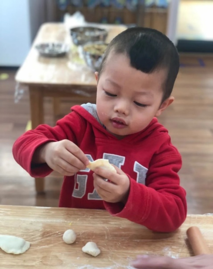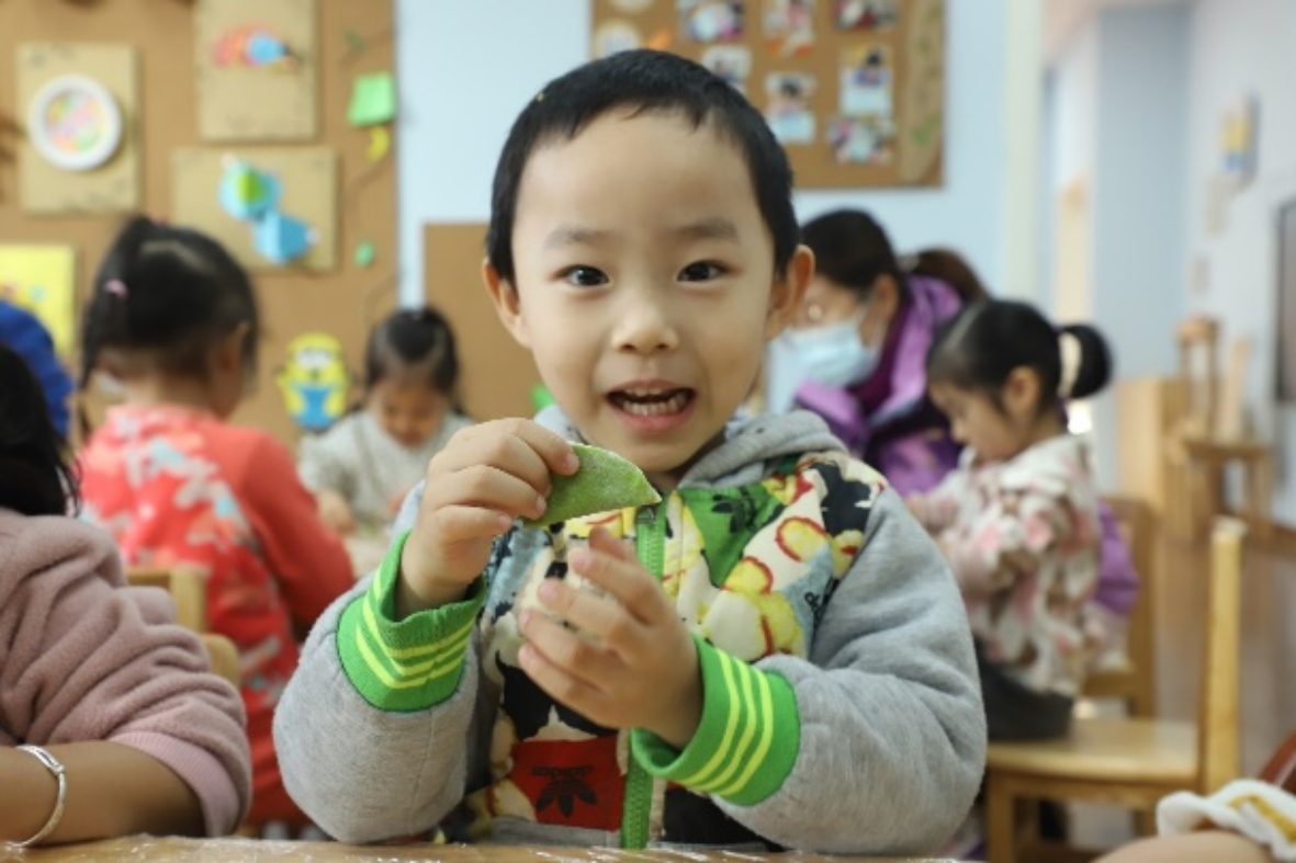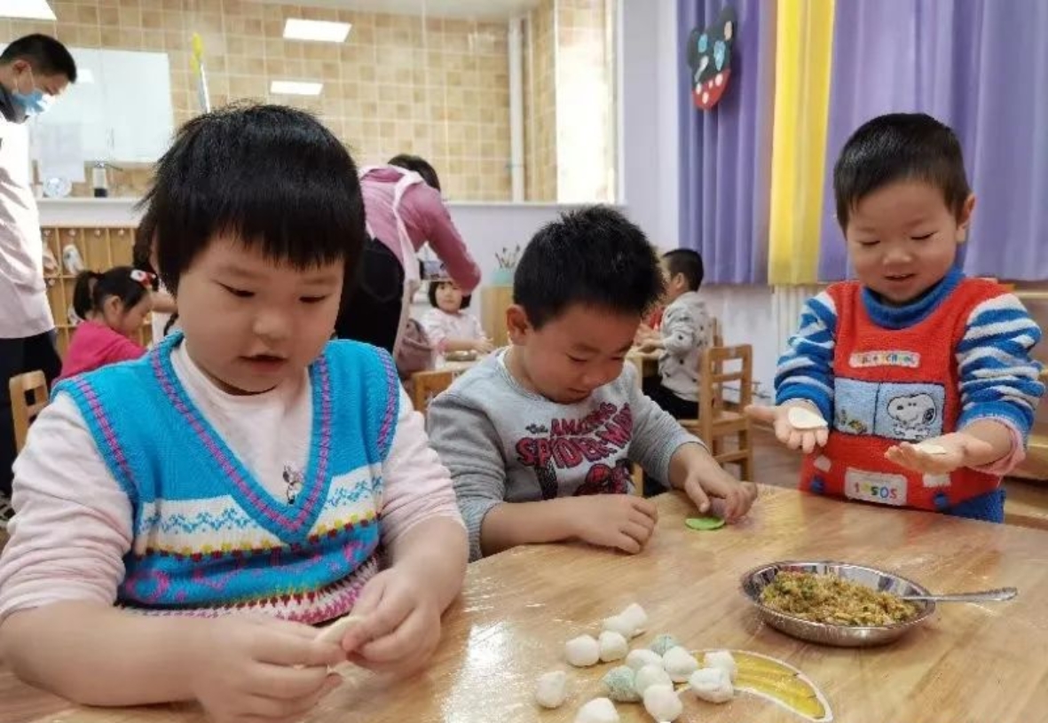 后勤、行政各岗老师走进班级和孩子们一起包饺子,其乐融融,感受似年夜饭一样的快乐!