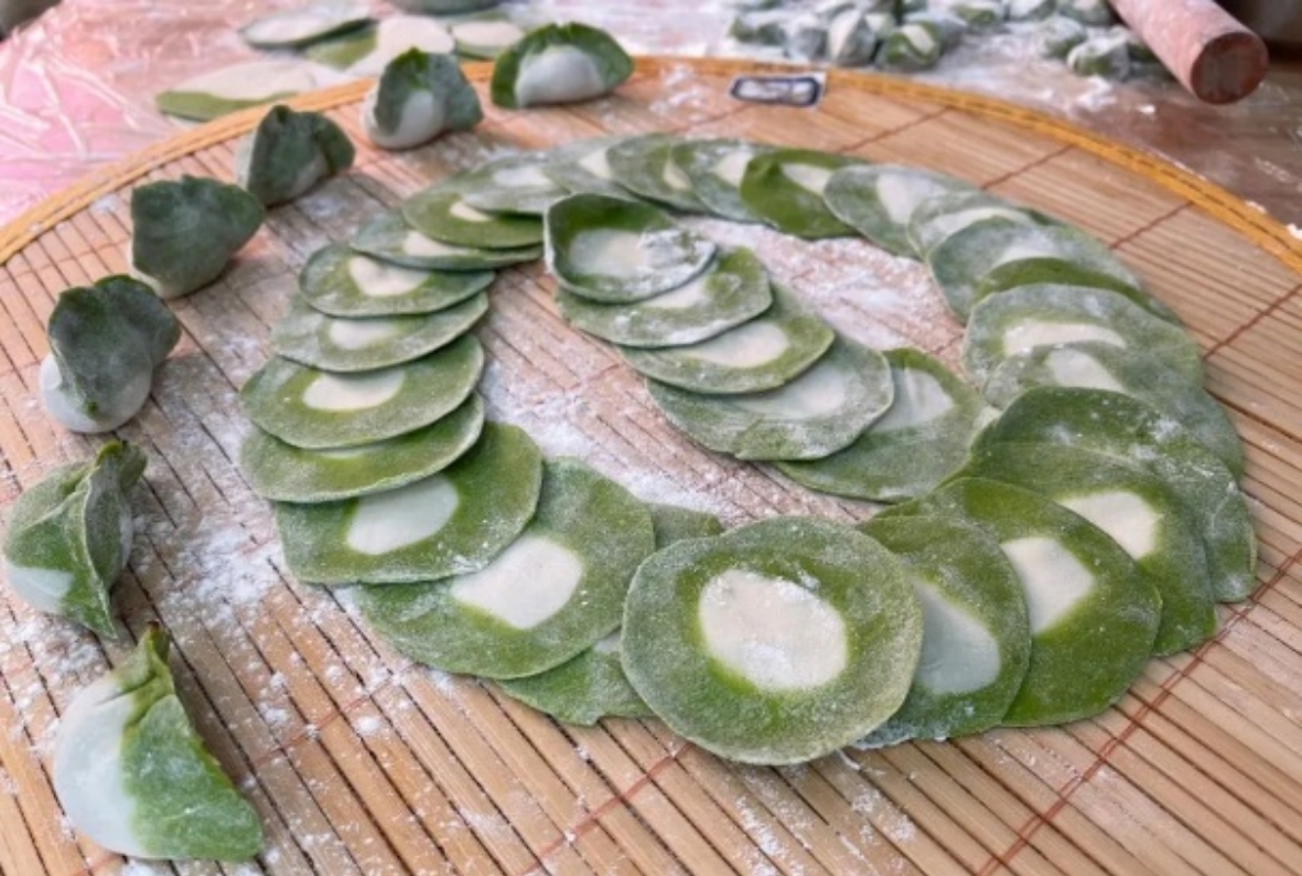 荷叶边、元宝边,彩色的饺子自己包,按一按、挤一挤,捏的饺子开口笑。