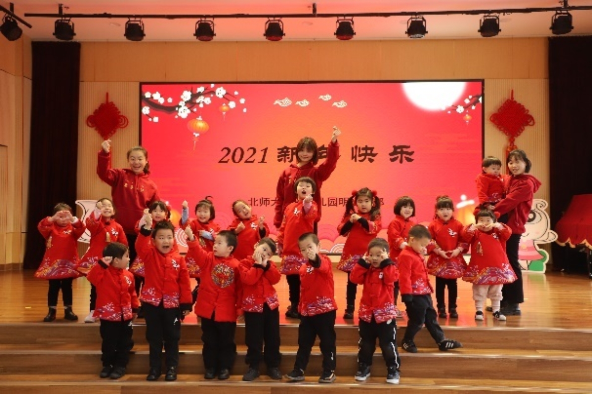 来园不到两个月的萌娃们,学到了不少的本领,新年奇妙剧场给他们提供了欣赏和展示的舞台。在观看老师们的表演和动画片中,孩子们了解了春节的来历,中国传统新年的过法,还在新年的舞台上,在和老师、同伴共同唱跳中收获了自信、感受了快乐。