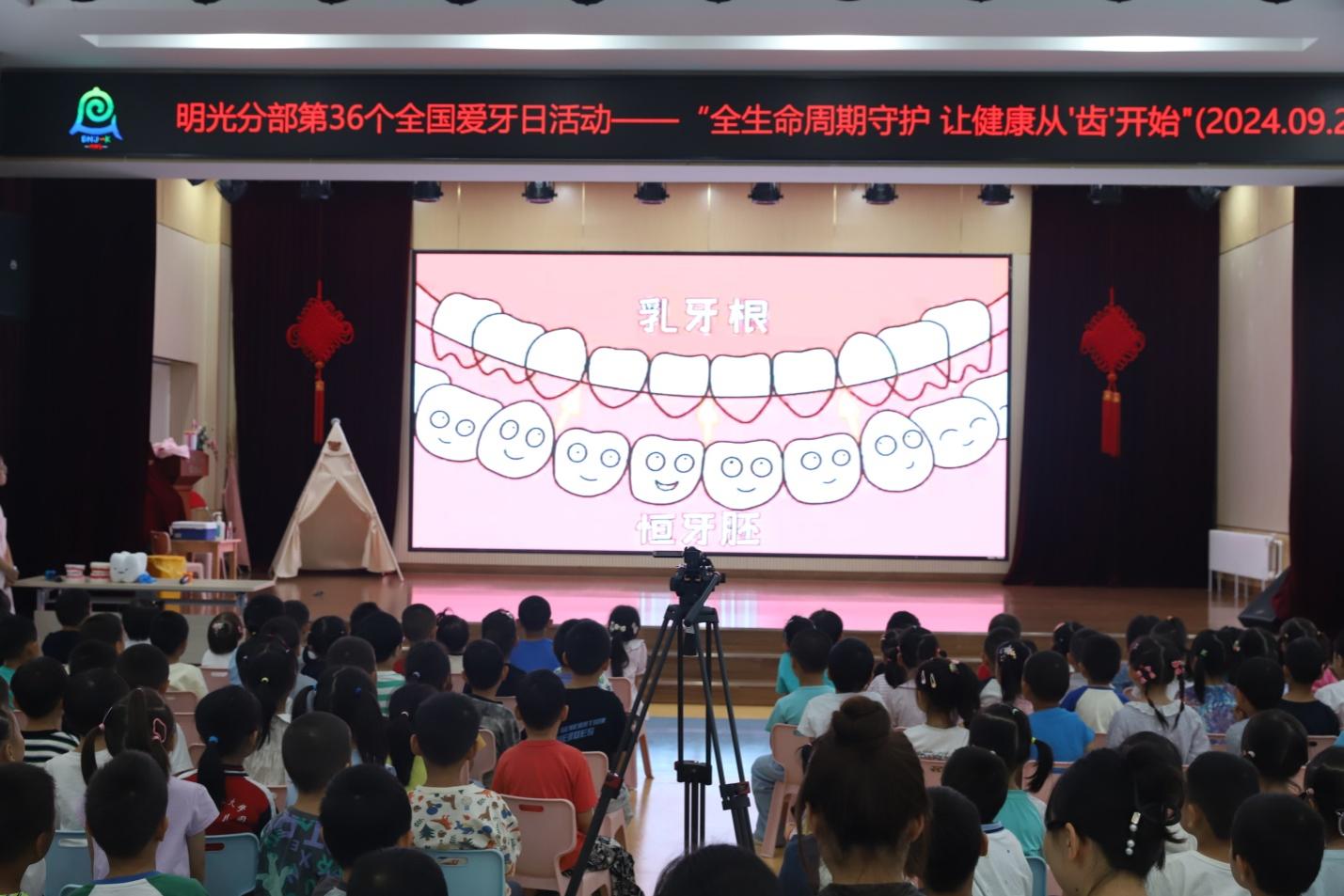 本学期园所高度重视幼儿口腔保健工作,为有效预防龋齿,积极做好保健宣教,在2024年9月20日第36个全国爱牙日,明光分部保健室积极策划并组织了落实“全生命周期守护 让健康从‘齿’开始”的爱牙日主题活动。