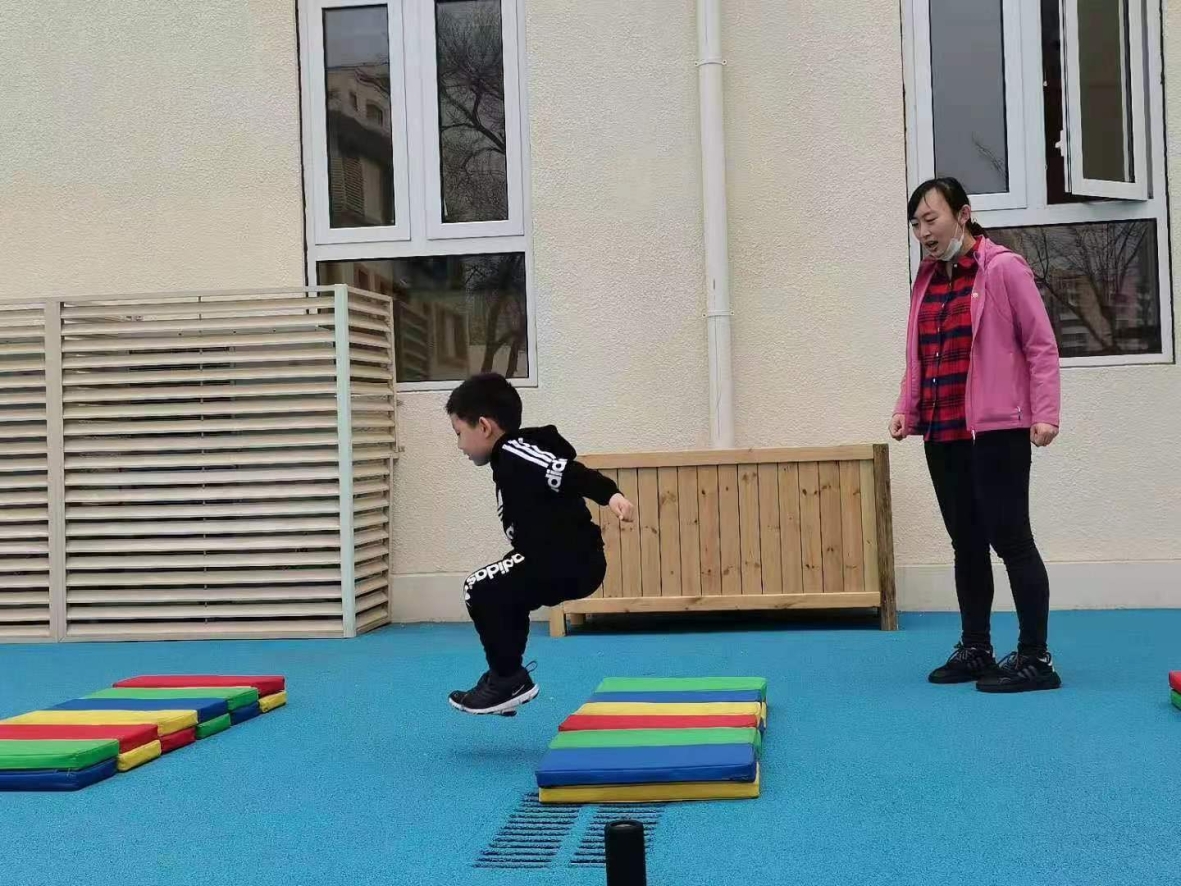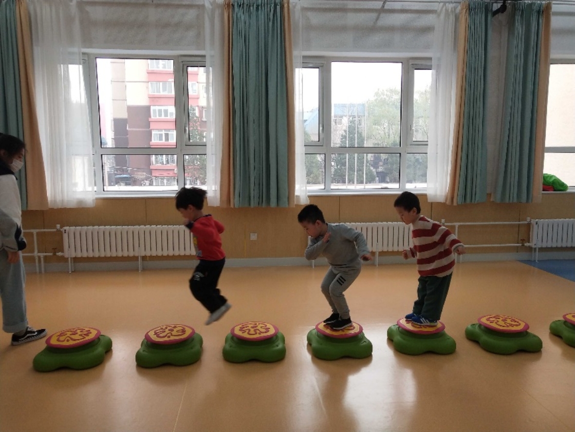 “一只小兔跳跳跳,我的小腿可有劲了!而且还不会摔倒哦。”