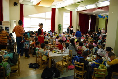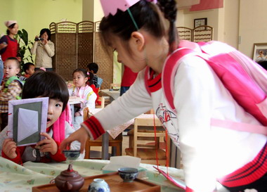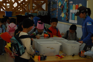 在大孩子的期盼、小孩子的好奇中,“小鬼当家”又一次在望京大西洋新城分园拉开序幕了。孩子们穿梭在各个班级、公共场地,每人五元的“当家费”,自己选择游戏、买东西、“当”东西……大孩子自然有经验,提前做好了计划,活动开始就直奔自己最心怡的地方,活动中还知道看看钟表,自己盘算还能玩多少时间;小孩子虽然对活动陌生,但对“自由”不陌生,在安全的环境里,他们也勇敢的结伴而行……