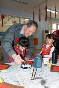 爷爷教九游写福字